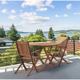 Conjunto de Mesa e Cadeiras Dobráveis em Madeira de Eucalipto